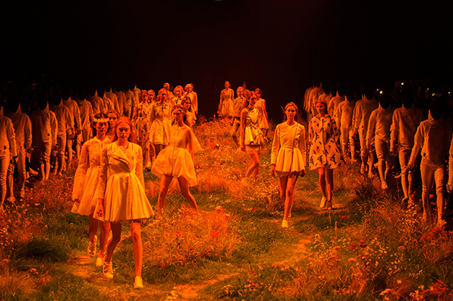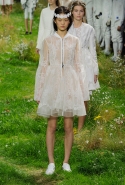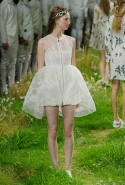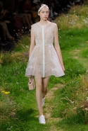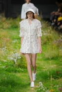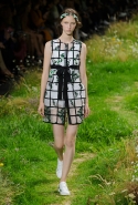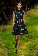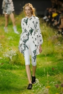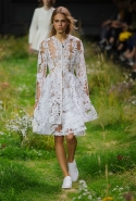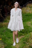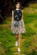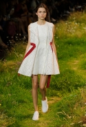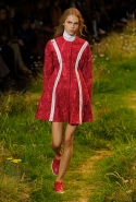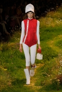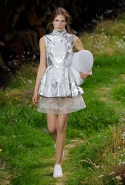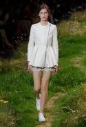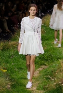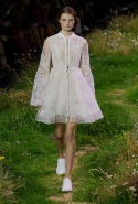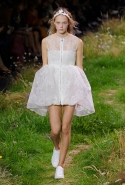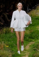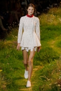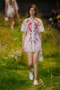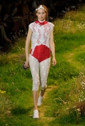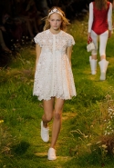 Решительно отвергая всякие мрачные вещи вроде деконструкции или стиля улиц, Джамбаттиста Валли продолжает создавать свой сказочный и спокойный мир, где всюду растут цветы и совершенно некуда спешить. На этот раз его показ для Moncler Gamme Rouge превратился в поход на пикник. На полу проросла трава сразу с протоптанными тропинками, а по ним к зрителям неспешно выходили девушки в белых платьицах baby doll, расшитых цветами, забавных костюмах не из нашего века и, периодически, в спортивных и околоспортивных вещах.