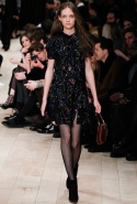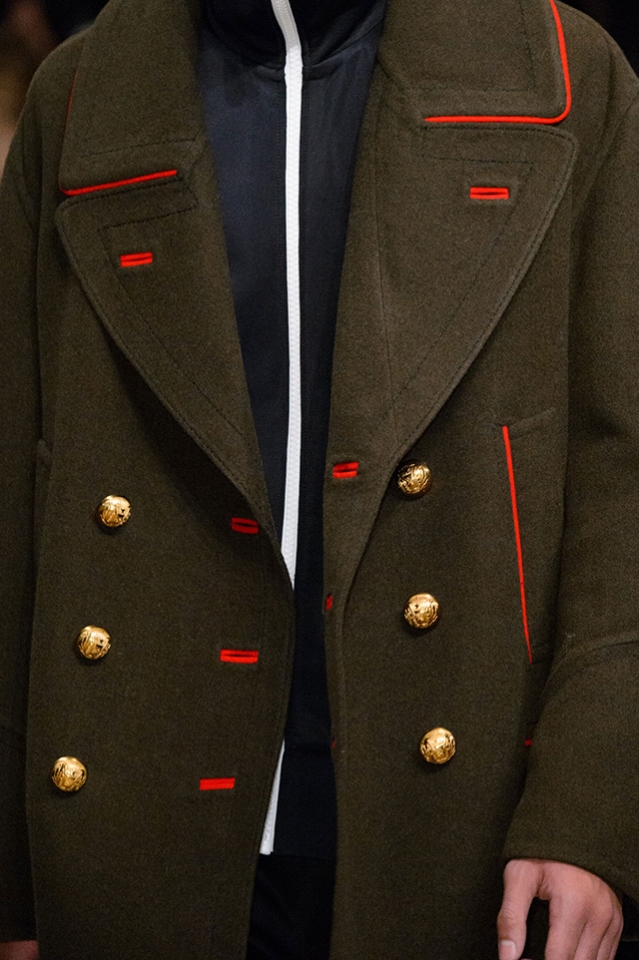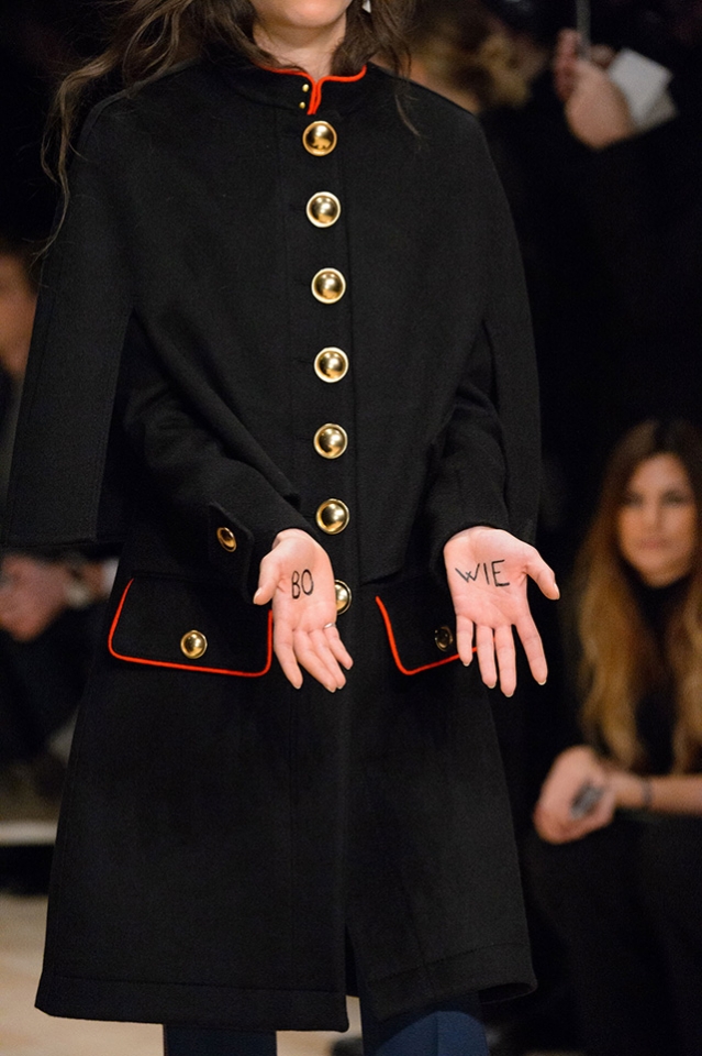 На этот раз на подиум на показе Burberry вышли юноши в вещах, наоборот, традиционно признаваемых крайне мужественными: то есть в спортивном стиле или с отсылками к военному — без камуфляжа, но с нарядными мундирами и бушлатами оловянных солдатиков. Девушкам, впрочем, досталось то же самое, причем повторенное порой точь-в-точь, без скидок на половую принадлежность. В прошлый раз Кристофер Бейли девушек от юношей все-таки отделял, первых сделав брутальнее, а вторых — нежнее и трепетнее. И хотя симпатичные, но совершенно не военные и не «пацанские» платья, появившиеся примерно с середины, поначалу вызывают вопросы, ответы на них готовы уже через пару выходов, когда парням тоже отсыпают по горсти пайеток. Ими расшиты олимпийки на молнии и даже треники — так что поборники традиционных ценностей все-таки найдут о чем поспорить, если доберутся до фотографий последней коллекции Burberry. И вряд ли это будет предложение Бейли носить олимпийки на молнии с более или менее классическими пальто.