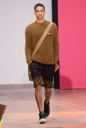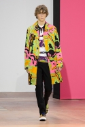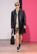 Героями дизайнера стали, разумеется, «крутые американские парни» — иначе и быть не могло. И соединил он в одной коллекции едва ли не все лучшее, что у них было за всю историю: серферскую моду 60-х годов, американскую классику, хип-хоп 90-х и немного от вечного бунтаря без идеала. Неудивительно, что получилась из всего этого коллекция яркая, пестрая и действительно веселая. Психоделические водовороты и ломаные линии переплетаются здесь с тигриными полосками, раскрашенными в самые кислотные цвета, рубашки со стоячими воротничками — с рубашками гавайскими, а кожаные костюмы из брюк и гоночных курток — c пляжными шортами и леопардовыми принтами.