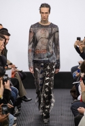За всеми этими отвлекающими деталями прячутся приталенные стеганые пальто, растянутые кардиганы с выпущенными петлями, пушистые шубы, пижамные костюмы, комбинезоны заключенных в самых разных и совсем не тюремных цветах, укороченные диско-куртки и брюки низкой посадки, открывающие подтянутые животы — все нетрадиционное, но давно не шокирующее. Ни ожерелья-чокеры на мужчинах, ни обнаженные торсы уже не удивляют так, как раньше, но это и хорошо. Потому что шок и вау-эффекты, хотя и способны по-прежнему взрывать интернет, никакой ценности все же не несут — совсем по-другому работает по-настоящему хороший дизайн.