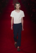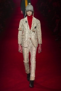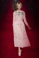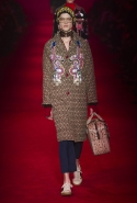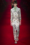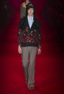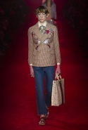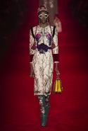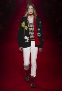 На самом деле довольно трудно сказать, какая это по счету коллекция Алессандро Микеле — вау-эффект, произведенный его первым появлением в свете софитов, уже прошел, а новый стиль марки с тех пор больше не менялся. Из коллекции в коллекцию с незначительными изменениями кочуют все главные фишки, появившиеся еще на дебютном показе. И образы главных героев, заданные еще тогда, остаются почти неизменными: вместо взрослых мужчин и женщин, сексапила и кожи — мальчики и девочки, гики и книжные черви, бабушкины береты и фантазии о приключениях, переродившиеся в красивых сюжетных вышивках. Эди Слимана за такую же преданность своим идеалам каждый сезон почти проклинают, но Микеле по-прежнему остается общим героем, хотя Gucci он встряхнул так же резко, как его коллега поступил с Saint Laurent. Но романтичный настрой креативного директора итальянского дома публике пришелся по душе больше. И итогом его работы стал не только рост продаж (Слиман и вовсе поднял продажи едва ли не вдвое), но и всеобщая любовь. Хотя на первую его коллекцию реакция тоже была противоречивой — уж слишком неожиданными оказались юноши с бантами на шеях и в кружевах.
