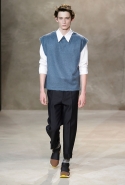 Несмотря на то, что большая часть моделей выходит на подиум в закрытых брючных костюмах, похожи они все равно в основном на школьников, а вовсе не на взрослых и умудренных опытом мужчином. Причем на школьников из СССР — в школьной форме, покупаемой всегда на вырост и вечно оказывающейся не по размеру, или в отцовских рубахах-робах — уже из 90-х, когда «счастливое советское детство» кончилось. Мальчики могут быть и плохими, и хорошими, но последних явно больше. А те, что насут в руках кожаные папки, трепетно прижимая их к груди, и вовсе похожи на классических мальчиков из музыкальной школы — поддерживают образ и отглаженные брюки, и рубашки с вязаными жилетами поверх. Рушат иллюзию только рубашки самых неожиданных цветов, покрытые к тому же цветочными принтами. Ни в одной советской школе таких вольностей ученикам бы не позволили, тут же отправив переодеваться.