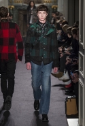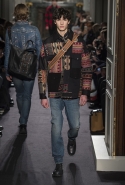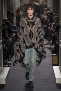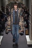 Мудборды Пьерпаоло Пиччоли и Марии Грации Кьюри, когда эти двое работают над новым показом, наверняка невероятных размеров — в каждой вещи столько деталей, сколько у большинства дизайнеров едва ли наберется во всей коллекции. Причем мужской линии это касается в той же степени, что и женской. В прошлый раз, например, главным героем коллекции стал писатель-путешественник Брюс Чатвин, а по костюмам рассыпались звери и растения из самых разных его странствий: слоны и колибри, единороги и рыбы, драконы и экзотические цветы. А еще раскрашенные географические карты и самые разные узоры, словно найденные у каких-то далеких племен. Не обошлось без «племенной» темы и в новом осенне-зимнем сезоне. Только сейчас можно с уверенностью сказать, откуда именно пришли рисунки на пестрых пончо, куртках и свитерах — узнать почерк индейцев навахо сможет каждый, даже если не особенно силен в этнографии.