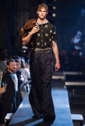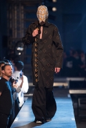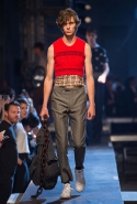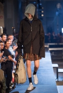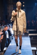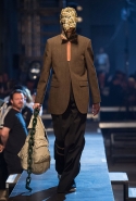 Под гремящую музыку очередного техно-рейва на подиум выходят модели с закрытыми лицами. Вместо блестящих и переливающихся масок, как у Maison Margiela, их головы укутаны обычными обрезами клетчатой коричнево-желтой ткани. Ткань закрывает глаза, и походка их выглядит неуверенной: как идти вперед, если не знаешь, куда идешь? Эта метафора юности, довольно прямолинейная и слишком в лоб, на этот раз работает безотказно. Панковская клетка, для многих ставшая символом молодежного бунта, показывает и его бесцельность, отсутствие четкого направления: тебе хочется кричать, что все должно быть не так, совершенно по-другому, но как именно, никто из вас, со всем не согласных, еще не знает.