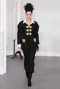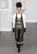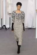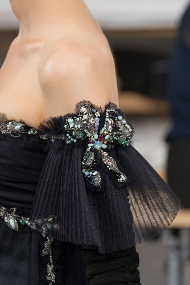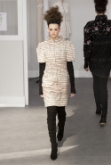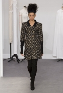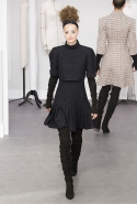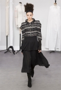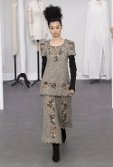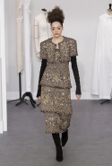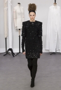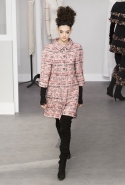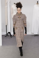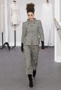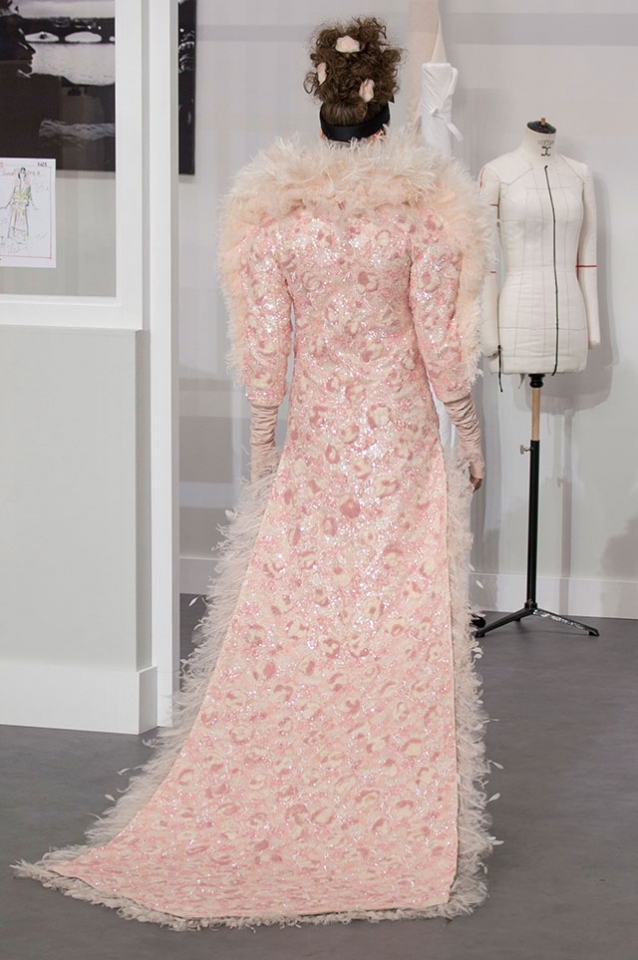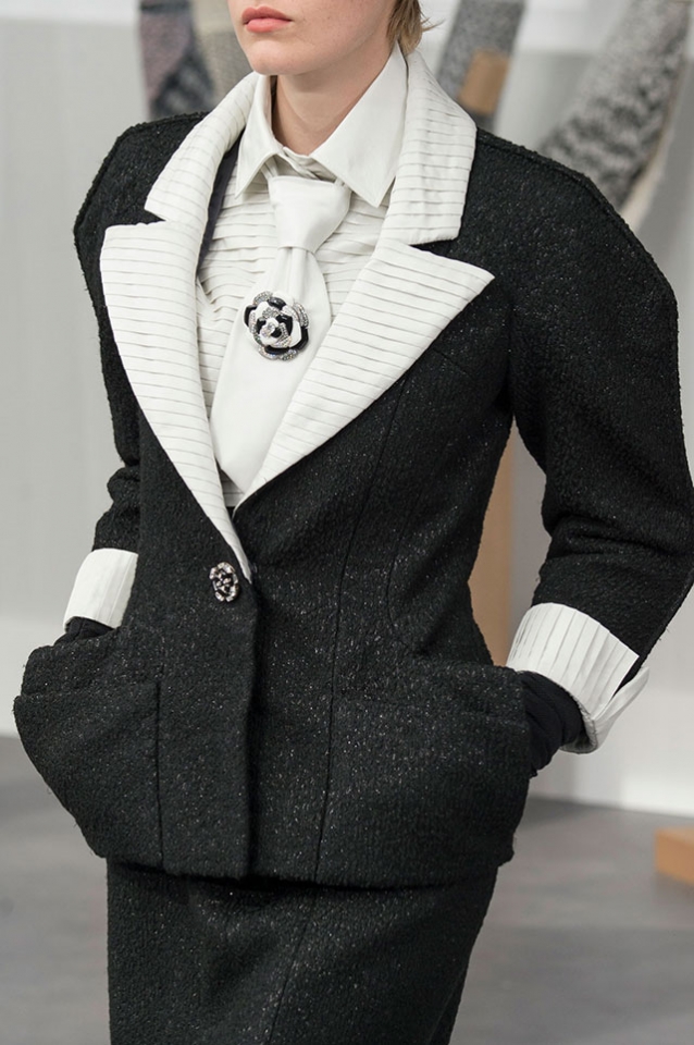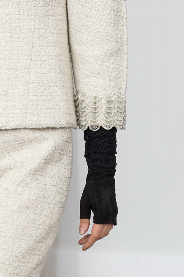 В самом названии выставочного павильона Гранд-Пале заложена суть и значимость этого сооружения: оно огромное и с амбициями. Один из знаковых проектов площадки — биеннале Monumenta, где выставляют инсталляции, которые буквально ни в какие другие ворота не лезут. Куда чаще — не раз в два года, а все четыре раза в год — здесь проходят показы Chanel. Так, еще две недели назад под знаменитой стеклянной крышей стояли десятки транспортных контейнеров и висел 130-тонный металлический скелет змеи, созданный китайским художником Хуан Йонг Пингом под арт-патронатом концерна LVMH для Monumenta 2016, а уже сегодня представили другое важное ископаемое — французское мастерство высокого шитья. Именно оно стало главной темой осенне-зимней коллекции Chanel Haute Couture, о чем красноречиво сообщали декорации в виде интерьеров шанелевского ателье на рю Камбон, воссозданных с известной тщательностью (включая мастериц при деле). Мудборды, раскройные столы, эскизы, лекала, макеты, манекены, детали «из недошитого», образцы тканей, катушки ниток, фурнитура — весь тот таинственный и притягательный антураж дизайнерского закулисья, куда так любят заглядывать те, чье представление о моде не омрачено излишними знаниями ее кухни. Модели выходили на подиум прямо из-под руки модистки, наспех расправлявшей на одежде невидимые складки. Очень сдержанная в цветовой гамме, коллекция была как всегда хлебосольна (71 выход), богата на разномастные твиды, выстроена по консервативной схеме «день-вечер-особый случай» и завершалась «платьем невесты». Им стала брючная пара из бежево-розового сатина — широкие укороченные брюки и закрытый жакет с воротником стойкой, богатой вышивкой и шлейфом из страусовых перьев. Почти все комплекты дополняли черная лента с бантиком на голове, черные сапоги-чулки и черные же высокие митенки — так исторический Дом, который, как и любая другая гранд-марка, зарабатывает на аксессуарах, а начинался и вовсе со шляпной мастерской, решил напомнить о том, что встречают все еще по одежке.