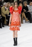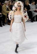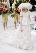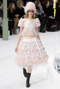 Эта коллекция Chanel стала моментом триумфа для кутюрного ателье Lemarié, присоединившегося к команде французского дома еще в 1996 году. В этой мастерской в Пантене, пригороде Парижа, работают с перьями и искусственными цветами. Так что бутоны, буйно расцветающие на пышных рукавах-буфах, юбках, платьях, топах, куртках, перчатках и вообще всем-всем, что теоретически может попасться во время шоу на глаза, — дело именно их рук. Немало потрудиться пришлось и вышивальщицам из соседнего ателье Lesage, работавшего в свое время еще с Чарльзом Фредериком Вортом и Мадлен Вионне. Сегодняшний показ стал безусловным триумфом обоих старинных ателье. И даже если то, что Карл Лагерфельд делает для Chanel, не вызывает у кого-то особых эмоций, детали — и их обилие, и качество выполнения — неизменно вызывают восторг.