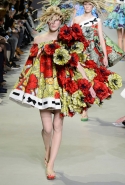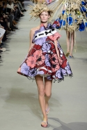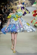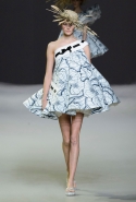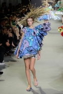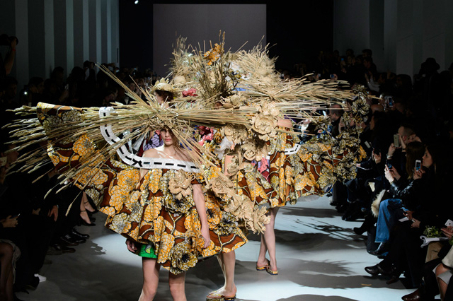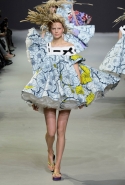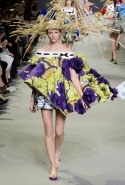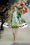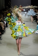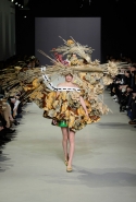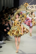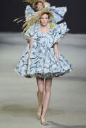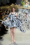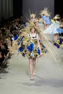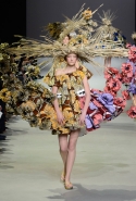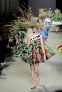 Эту коллекцию Виктор Хорстинг и Рольф Снорен посвятили Ван Гогу. Хотя поначалу все происходящее на подиуме напоминает скорее сельский фестиваль урожая или какое-то ритуальное действо — языческий праздник плодородия. Голландские дизайнеры довели идею девушек-цветов до абсурда, нарядив их в чудные платья, изрисованные цветами целиком и полностью, с асимметричными подолами и незабываемо пышными юбками. Ну а головные уборы и вовсе невозможно не заметить — надеемся, на бэкстейдже шоу никто не пострадал от колотых ран.