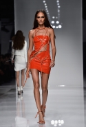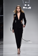 А еще, что особенно приятно, на подиум вышли сегодня не просто бывшие и нынешние «топы», а девушки со здоровыми, сильными телами, от Наташи Поли до Ирины Шейк. Культ тела в Versace вовсе не означает культ какого-то стандартного сочетания параметров или цифры на весах. Тело, как продолжает утверждать с каждым выходом Донателла Версаче, должно быть не худым, толстым, стройным и каким-то еще, а в первую очередь функциональным — и тогда будет сексуальным, какие бы числа сейчас ни были в моде. Многих из девушек, выходивших сегодня на подиум, назвать нельзя и спортивными, но даже чей-то пышный бок, округло выпирающий сквозь прорезь на бедре, пусть он и смутит кого-то, данный культ Versace поддерживает. Потому что все это, к счастью, история не просто о том, как кто-то в 2016 году продавал (какое новшество!) секс, а о принятии себя и любовь к себе, и, конечно, про уверенность, которая берет города.