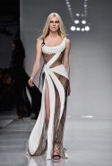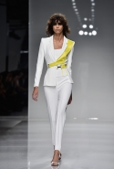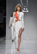 На самом деле даже эта коллекция откровенных платьев, обнажающих куда больше, чем принято считать приличным, из обновленной концепции марки почти не выбивается. Потому что в вырезах, прорезях и мини, больше похожих на бандажи, чем на одежду, Донателла Версаче спрятала, по собственному признанию, вещи для занятий спортом. Например, в некоторые вечерние платья в пол вшиты спортивные топы, а их поддерживающие спинки, лямки которых сходятся ровно в точке между лопаток, продублированы спереди, накладываясь на обычную часть. И область декольте, оформленная таким образом, выглядит очень здорово — и очень в духе этого athletic couture, как называет свою новую коллекцию нынешняя хозяйка дома, который построил Джанни Версаче.
