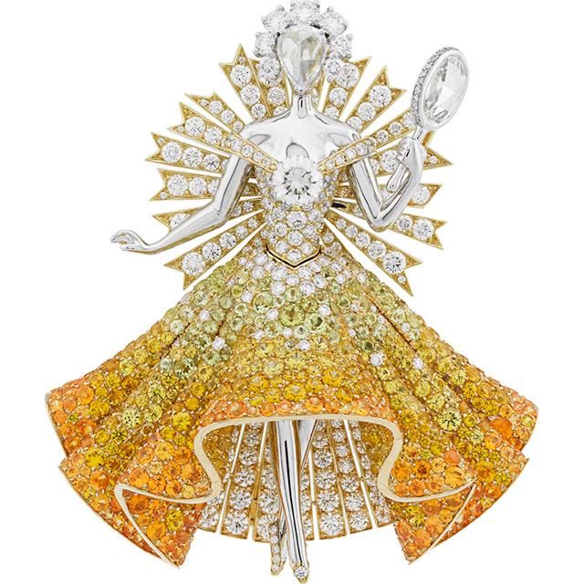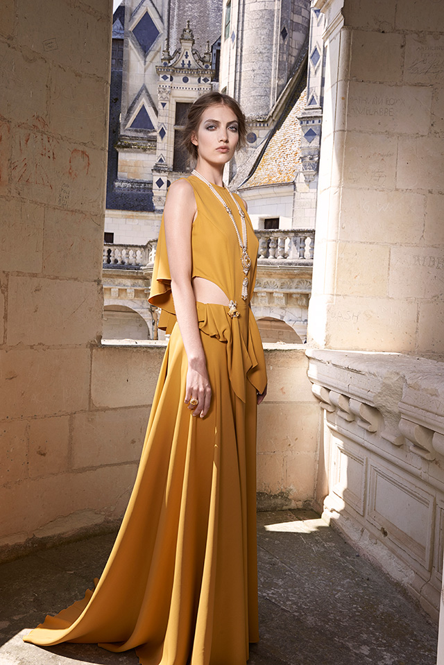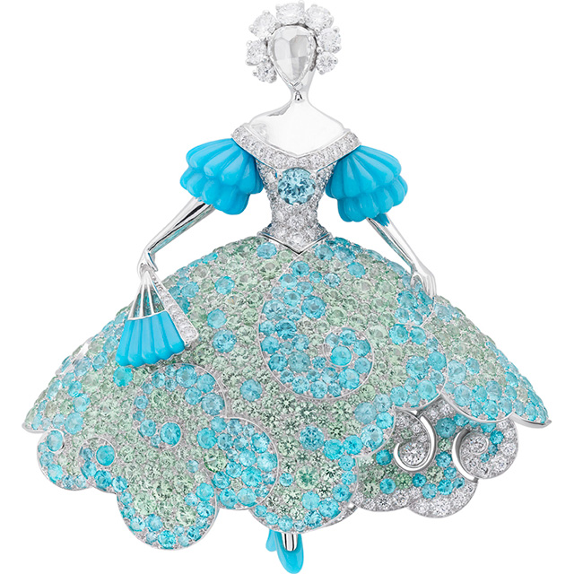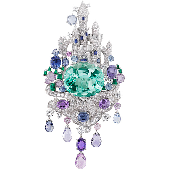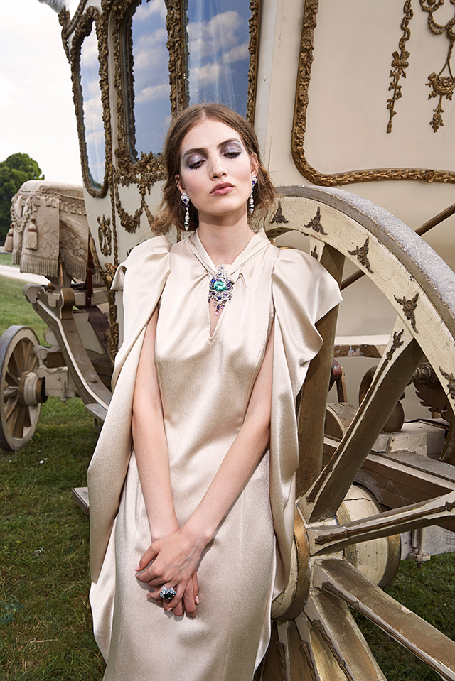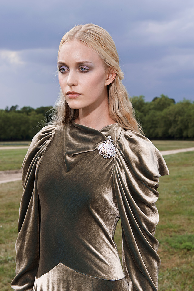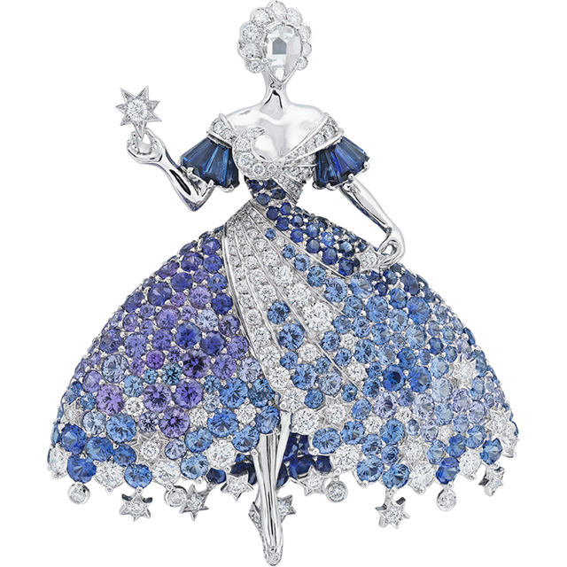 Если говорить на языке кинематографа, мастера Van Cleef & Arpels блестяще экранизировали старинную (свою стихотворную версию "Ослиной шкуры" Перро впервые представил в конце XVII века) сказку и создали набор украшений, каждое из которых рассказывает определенную часть истории. Так, например, до мельчайшей детали ювелиры именитого дома продумали и воплотили в жизнь три платья принцессы в серии изящных брошей. Все сеты делятся на различные периоды жизни главной героини истории: детство во дворце, скитания в лесу и счастливый брак.
