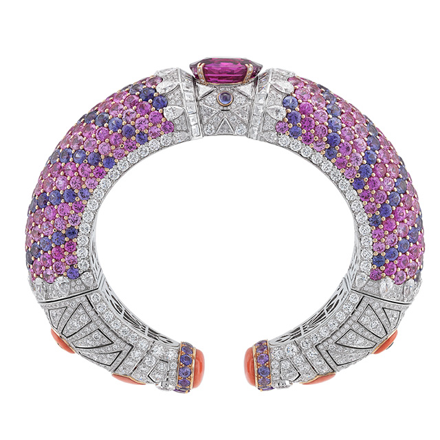 Основой украшений Peau d’Ane raconté par Van Cleef & Arpels стали многочисленные драгоценные камни (от бриллиантов до жемчуга) различных размеров, каратности и огранки. Ювелиры дома использовали как классические техники огранки камней, так и новые методы, придавая каждому камню свой характер.