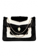 Но самыми необычными выглядят сумки Serpenti Forever. Это небольшие сумки на цепочке, которые от остальных отличаются особенно нестандартной отделкой: три из четырех украшены объемной «чешуей», посеребренной или покрытой позолотой. А четвертая и вовсе сделана из белого и черного норкового меха.