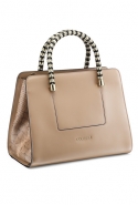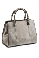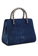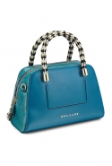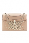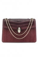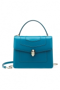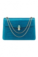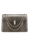 Бирюзовый, рубиновый, аметистовый — на яркие краски в новом сезоне команда Bvlgari не поскупилась, хотя коллекция это и не весенняя, а осенне-зимняя. Дополнительной яркости добавляют и застежки-змеи (выполненные, кстати, вручную) с глазами из покрытых эмалью ярко-зеленого малахита или черного оникса. В этом году коллекция сумок модного дома пополнилась также новой моделью Scaglie Bauletto Bag, которая была создана в честь сорокалетия ювелирно-часовой коллекции Bvlgari Bvlgari.
