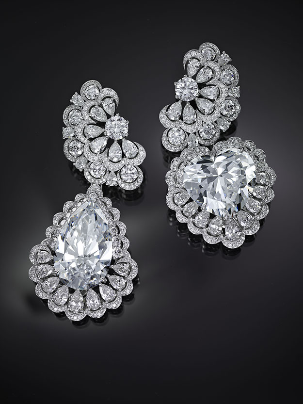 Работали над ювелирной коллекцией почти год. За это время мастера Chopard придумали, например, колье-трансформер — три подвески с гигантскими бриллиантами легко снимаются, и колье превращается в чокер. Хотя есть вероятность, что хозяйке этого колье совсем не захочется их снимать: суммарный вес украшающих подвески бриллиантов — почти 100 карат. Кстати, две из трех подвесок с бриллиантами (огранки «сердце» и «груша») можно прикрепить и на серьги, вместо колье.