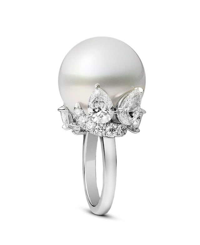 Ансамбль Prestige состоит из украшений, декорированных бриллиантами и белым жемчугом необычного размера: кольцо из этого сета увенчано жемчужиной диаметром 19 мм.