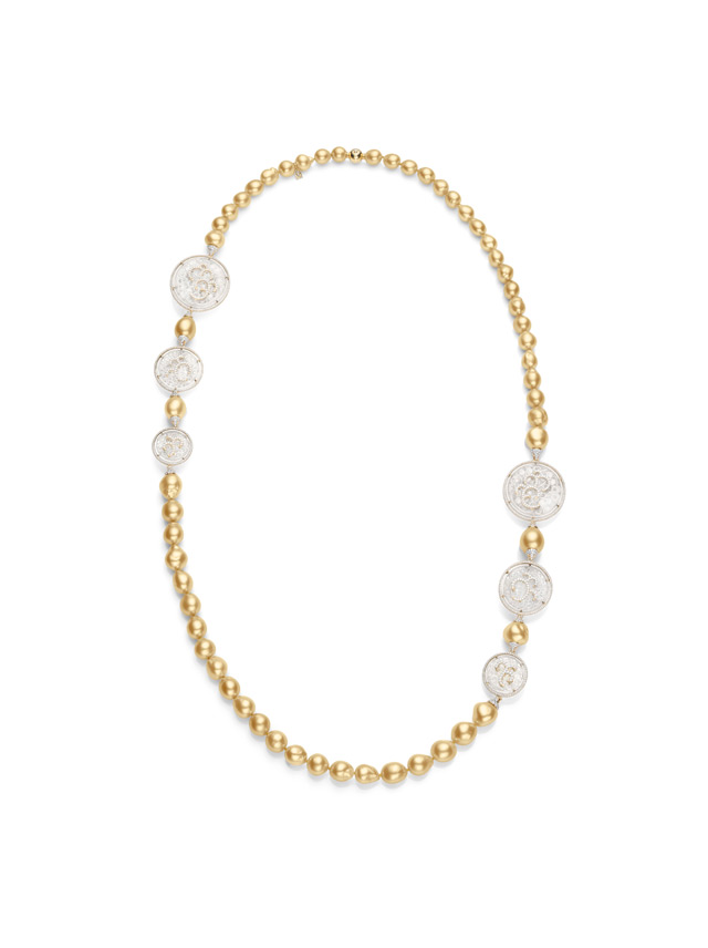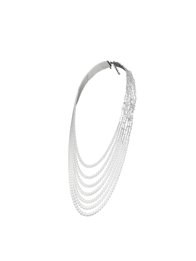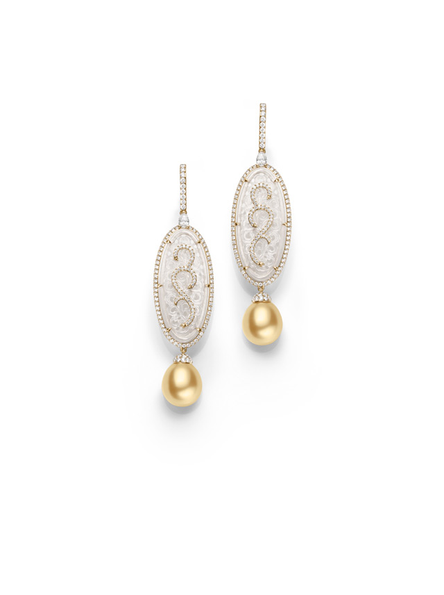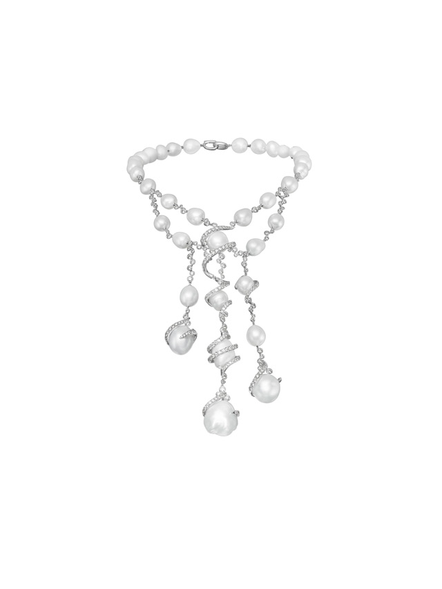 Уникальными видами жемчуга удивит колье Radiance, при создании которого использован редкий золотистый барочный жемчуг ассиметричной формы.