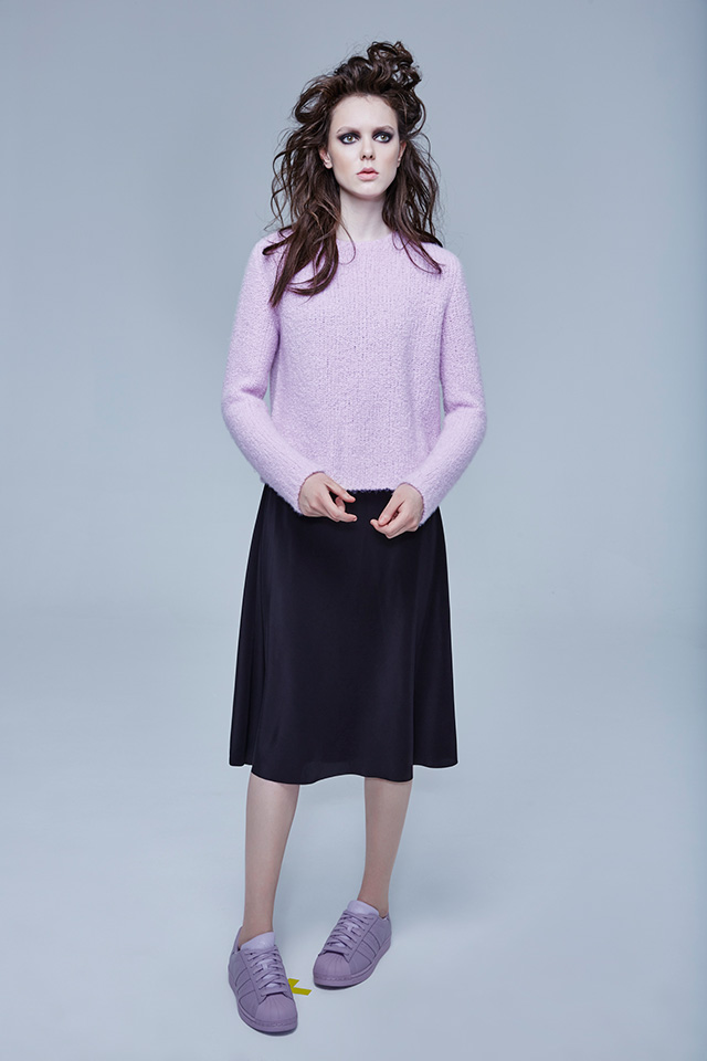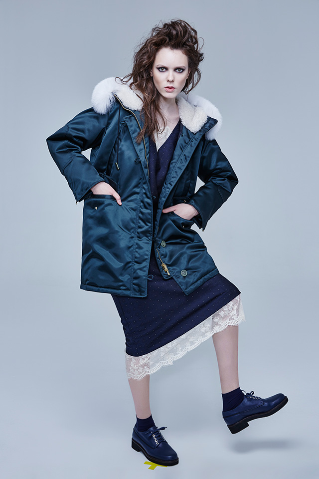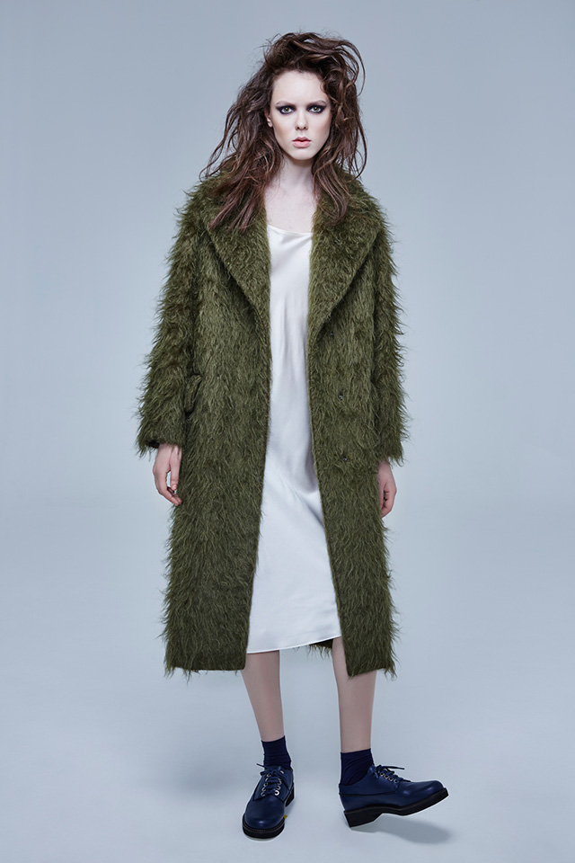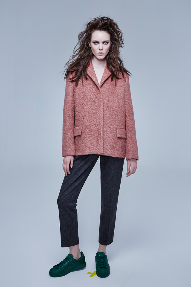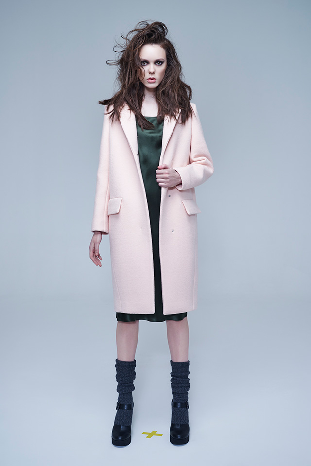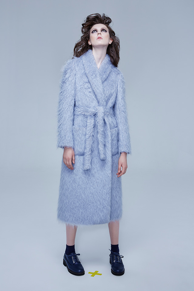 Брутальные объемные куртки в мужском стиле дизайнеры марки компонуют с совершенно девичьими и нежными: и конфетных оттенков пальто, и ворсистыми и кудрявыми плащами-халатами. В некоторых предметах маскулинность и женственность переплетаются, прекрасно дополняя друг друга: пальто, напоминающее шинель узнаваемой формой и грубой фактурой плотной шерсти, оживает благодаря розовой прострочке и пуговицам, а пушистый и расслабленный плащ-халат приобретает некоторую суровость из-за цвета хаки.