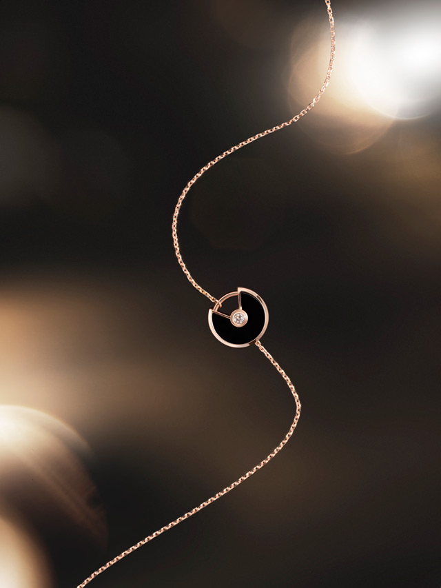 Флагман Amulette de Cartier — подвеска в виде сферы, выполненная из перламутра, оникса или золота с бриллиантовым паве и большим ониксом или бриллиантом в центре украшения.