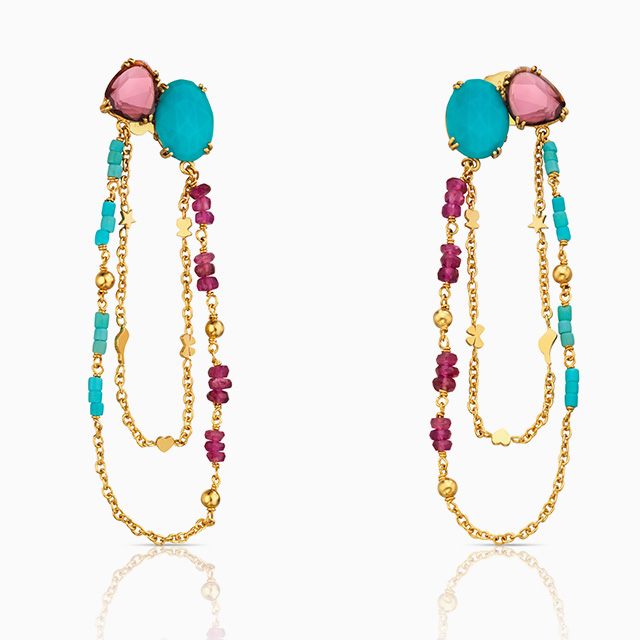 Сами украшения выполнены в ярко выраженной эстетике ар-деко, которая предполагает смелые сочетания различных материалов, оттенков и форм. В летнем «меню» у Tous — розовый кварц, бирюза и перламутр в сочетании с позолоченным серебром, а также бриллианты, шпинели и турмалины. С украшениями из новой коллекции вы точно не останетесь без внимания!