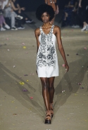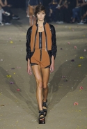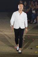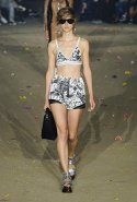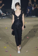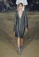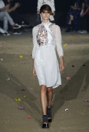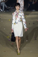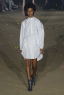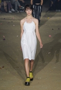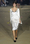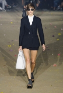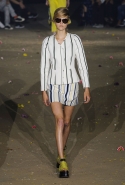 Модели маршировали в белоснежных летящих платьях, бра на голое тело, шортах в бельевом стиле и комбинезонах с полосками и цветочными узорами. Было много бомберов, без которых немыслим гардероб современной девушки в любой столице мира. Дизайнер представил разные варианты: классические и удлиненные, кожаные и шелковые, белоснежные и кипельно-черные.