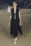Связующим элементом коллекций 3.1 Phillip Lim чаще всего становится кожа. В этом сезоне дизайнер вдоволь экспериментировал с материалом: получились кожаные платья, бра, юбки и верхняя одежда. Все асимметричные разрезы модельер дополнил молниями. Под конец — вспышки лимонно-желтого на классическом блейзере, удлиненном жилете и кружевном трикотажном платье завершили показ на высокой ноте.