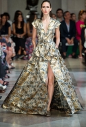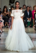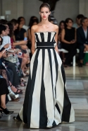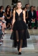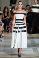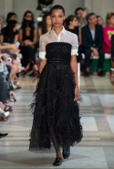 Коллекция почти целиком выполнена в черно-белом монохроме с редкими вкраплениями голубого денима, серебряной узорчатой тафты и шелка с классическими цветочными узорами. В целом, все очень гармонично и пристойно, только — простите за дерзость — возможно, скучновато? Похоже, что классическому дому моды не помешает радикальный апгрейд. Кто осмелится посягнуть?