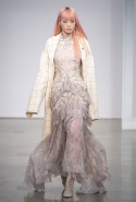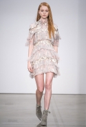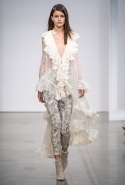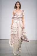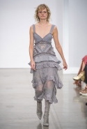Сдержанные тона, блеклые цветочные принты и клетка, летящий шифон, топы с декором на одно плечо — словом, дизайнеры себе не изменяют. Однако при внимательном рассмотрении видно, что платья сшиты не из цельного материала, а из множества лоскутков; а ажурный декор манжетов и горловины предназначался скорее для однотонной блузы в викторианском стиле, чем для укороченного топа в клетку.