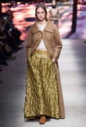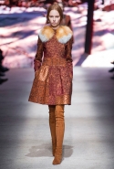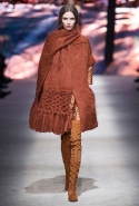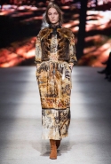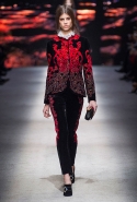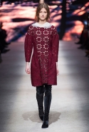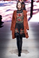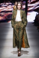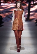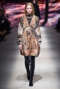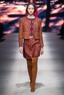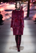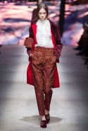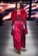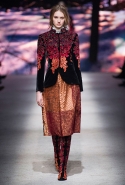 Поначалу дизайнеры используют лишь три цвета: базовые черный, белый и красный. Но постепенно к картине добавляются все новые и новые тона. Сперва в рубиново-красном обнаруживаются вдруг следы розового и фиолетового, потом в замысловатых вышитых узорах начинают поблескивать золотые нити, а после все эти густые осенние краски начинают смешиваться в одном наряде в самых разных сочетаниях. Не меньшую роль играют и текстуры. Растительные узоры бегут по полупрозрачной сетке и плотным костюмным тканям, золоченой гравировкой покрываются жаккард и замша, пушатся кардиганы и накидки крупной вязки, а мех — и сам по себе драгоценный — оказывается фигурно выстриженным под камуфляж.