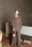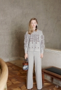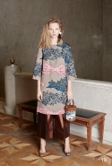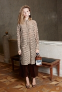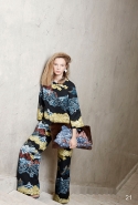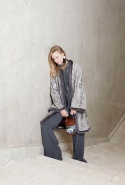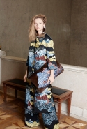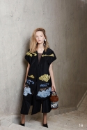 Ожидая увидеть латы, доспехи и резкие угловатые линии, мы были очень удивлены, увидев мягкие и уютные даже внешне трикотажные костюмы, платья с достаточно пышными юбками и принтованные рубахи и брюки. Хотя кое-что все-таки напоминает о рыцарских одеяниях. Например, костюмы из туник и брюк из фактурного трикотажа, выпуклые точки на котором похожи на кольчужные кольца, а меховые аппликации — на дополнительные щитки на броне. Но на нескольких предметах, оформленных подобным образом, отсылки к азиатской культуре не закончились. Сам крой объемных, явно oversized-вещей вдохновлен национальной одеждой. Напоминают об этом также многослойность (например то же сочетание удлиненной туники, брюк и еще нескольких слоев верхней одежды), и нарядные кафтаны-халаты, и меховые вставки, появляющиеся тут и там.