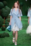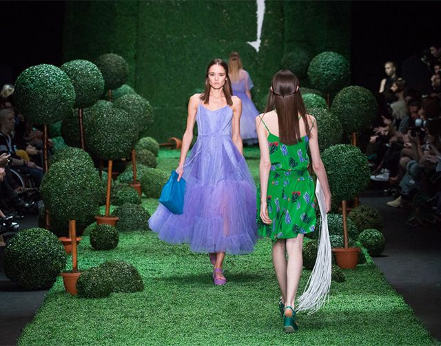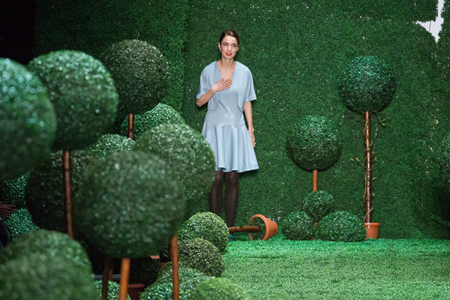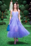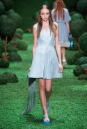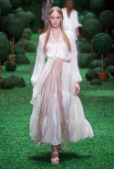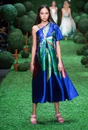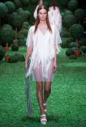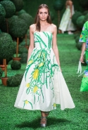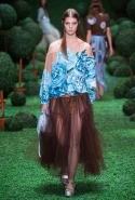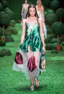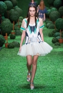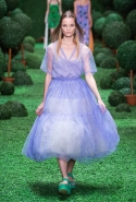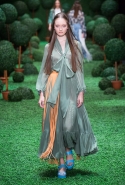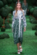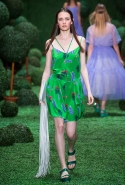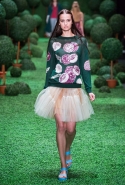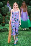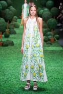 Вся коллекция строится на переплетении двух стилей, спортивного и ар-деко, но дизайнер дополнительно разделяет ее еще на четыре главы, каждая из которых посвящена одному из упоминающихся в сказке цветков. Не все части одинаково удались, но первую, "гвоздичную", и вторую, "маковую", можно определенно назвать большой удачей. Когда на подиум, на один вечер поросший густой зеленой травой, выходят первые модели, невозможно не вспомнить недавний показ Dries Van Noten, также посвященный размышлениям о красоте, Лету любви и 70-м и проходивший на мозаичном травяном ковре. Сходство, впрочем, совсем поверхностное и мимолетное, и совсем скоро об этом уже напрочь забываешь.