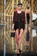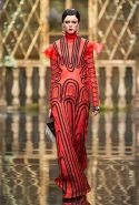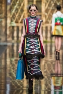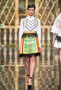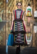 Сама коллекция получилась такой же яркой и красочной. Самые кричащие и активные цвета легко смешиваются между собой, но, то идя однородными блоками, то переплетаясь ломаными линиями, эти графичные узоры тут же выделят из толпы любую, кто решится надеть смелое платье или даже одну только юбку.