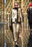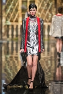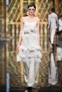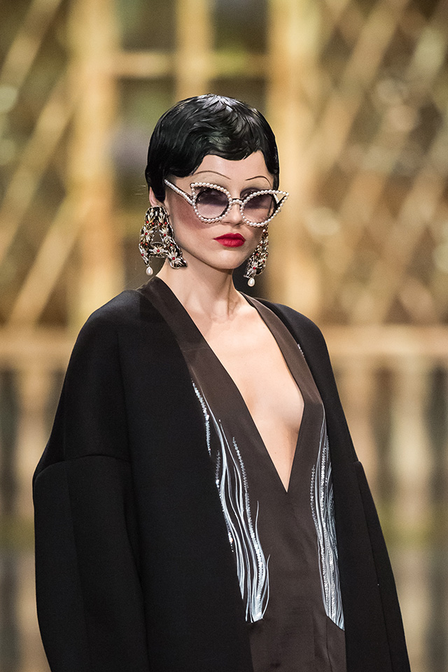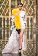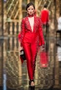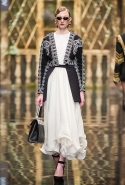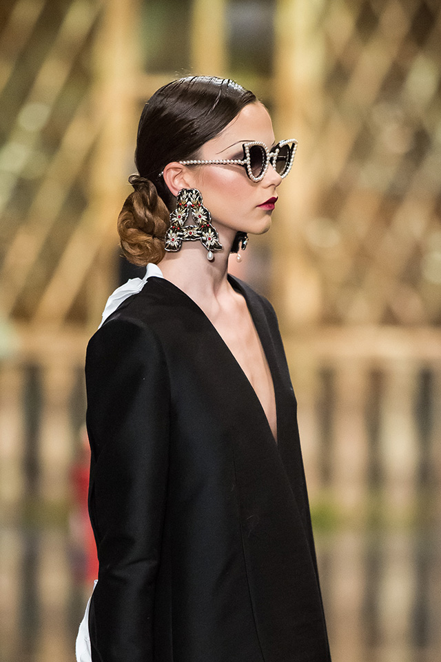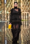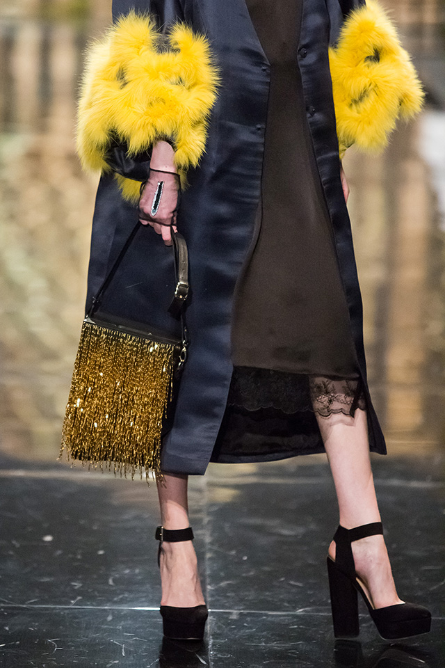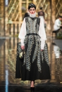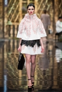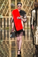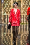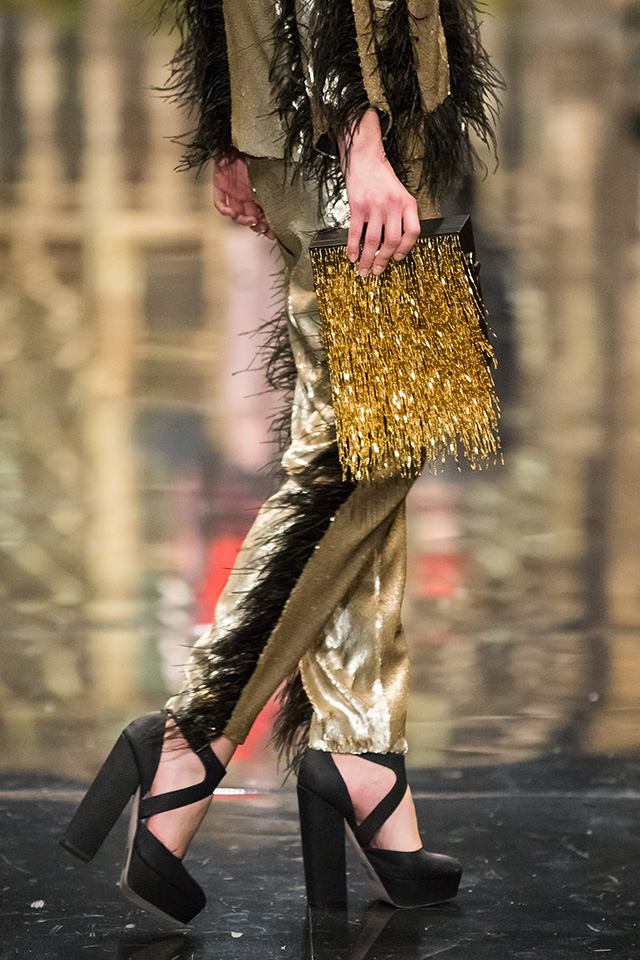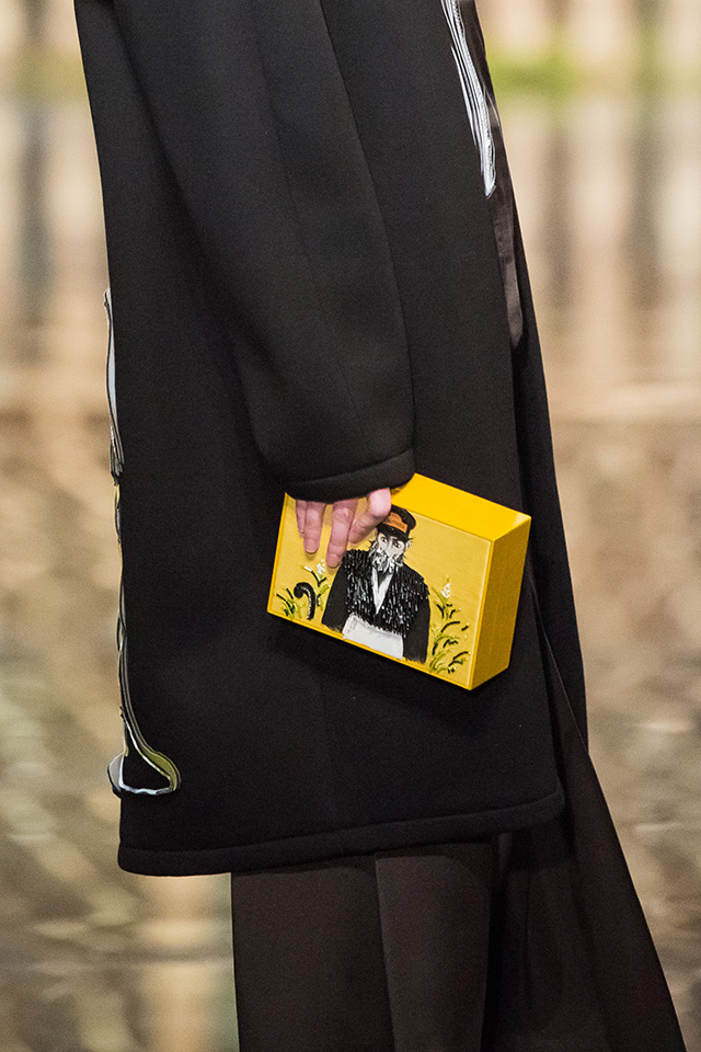 До того как представить свою коллекцию на подиуме в Гостином дворе, Александр Арутюнов уже дал поклонницам марки подсказку о том, чего ждать в осенне-зимнем сезоне. Первыми «ласточками» оказались, как всегда, аксессуары. Еще в начале марта команда модного дома представила капсульную коллекцию сумок с аппликациями и вышивками, сделанными по мотивам полотен грузинских художников Нико Пиросмани и Ладо Гудиашвили. Вместо знакомой каждому девочки с шариками на портфелях, рюкзаках и сумках появились, например, навьюченные ослики, мудрые старцы и усатые мужчины в национальных ярких костюмах. Те же персонажи пробрались и на подиум: кто-то по-прежнему смотрел на зрителей только с аксессуаров, а кому-то нашлось место и на свитерах, и на нарядных легких пальто с перьевой оторочкой. Нашлось место и для вышитых цветов, которые до этого украшали только забавные и немного старомодные ридикюли, — в Гостином дворе они расцвели и на басках-фартуках из черной кожи.
