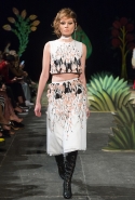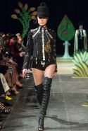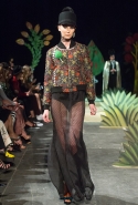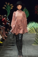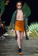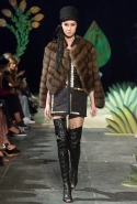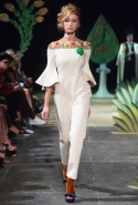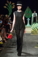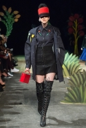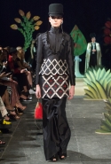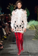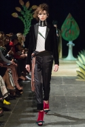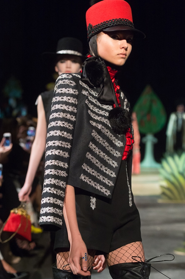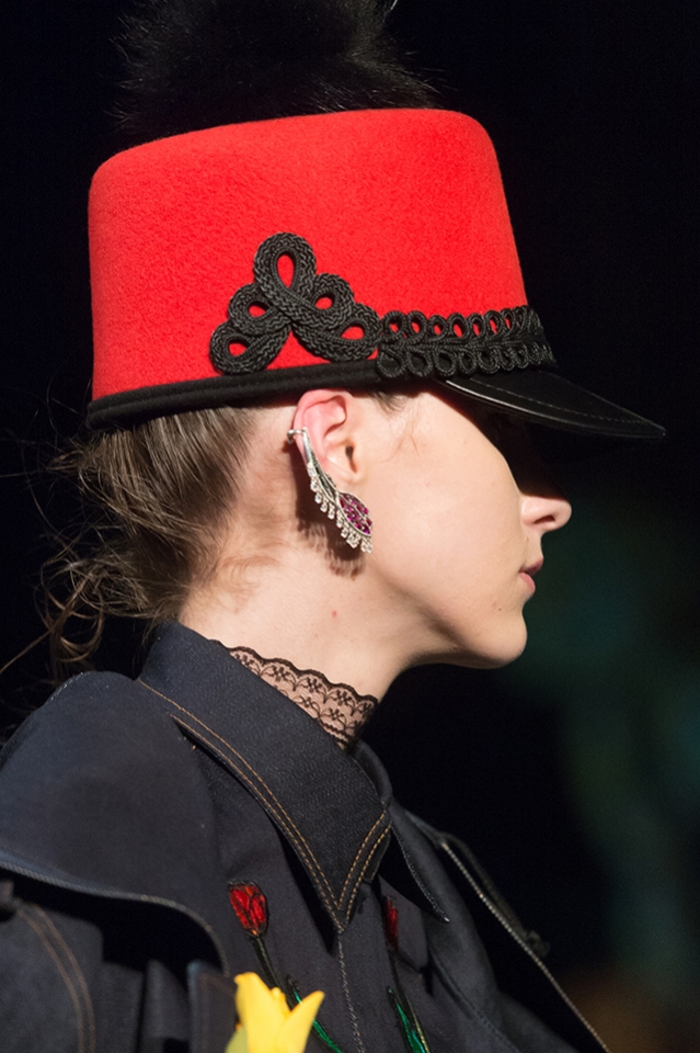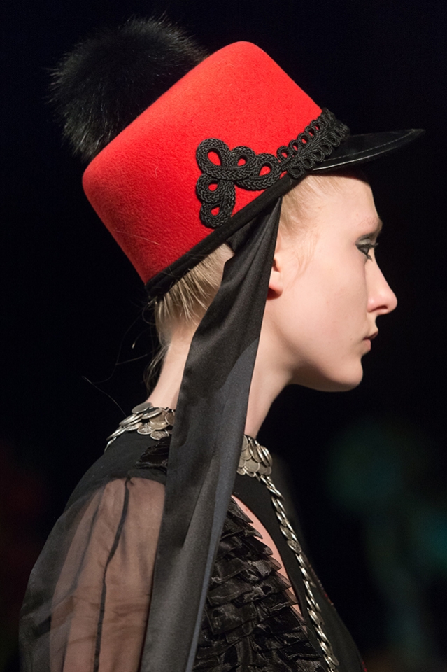 На этот раз главной темой сезона, по словам самого Александра Арутюнова, стала армянская мифология, смешавшаяся с нарядами кавалеристов XVII—XIX веков. И если о первой человеку, с предметом незнакомому, неизвестно практически ничего, то второй пункт более очевиден — и вспоминается дизайнерами намного чаще. Расшитые плечистые жакеты, киверы (высокие головные уборы с козырьками, из-под которых особенно эффектно выбиваются легко завитые кудри девушек-моделей) и аксельбанты — этого можно было ожидать, и все это здесь, конечно, есть. Продолжают тему и броские ботфорты, похожие не то на вытянувшиеся в длину жокейские сапоги, не то на модифицированную версию лосин, и юбки амазонок с запахом и высокими вырезами до бедра. А еще юбки из перьев, блузы с покатыми плечами и пышными рукавами, платья в оборках и с высокими воротниками — это уже, конечно, непохоже на форму отчаянного кавалериста, но смотрится в контексте очень гармонично. Солдатики ведь оловянные, из коробки с игрушками, а не с поля боя — мода не любит серьезных тем, но любит играть в сказку.