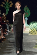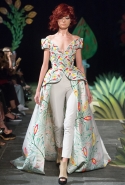 Мы привыкли к тому, что коллекции Alexander Arutyunov всегда ярки, сияющи и порой почти вызывающе роскошны, — за это, в общем, его и любим. А еще за то, что роскошь эта театральна, но не чересчур серьезна, — излишняя серьезность в компании со всеми этими эпитетами идет часто, но, к счастью, не в нашем случае. У кого еще из дизайнеров, специализирующихся на производстве нарядов «на выход», на костюмах поселятся огромные и яркие нарисованные гуси? Или усатые персонажи с картин грузинских художников? Таких — по крайней мере в России — у нас немного.