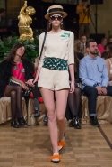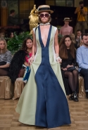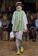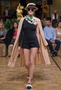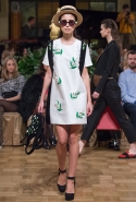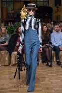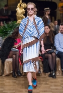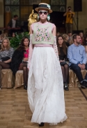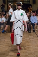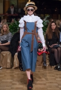 Поначалу некоторые вещи все-таки вызывают недоумение. Особенно смущают гуси, которые открывают показ, пристроившись (причем в полный гусиный рост) на платье и юбке. А еще джинсовый комбинезон и несколько платьев из денима, сложно и интересно скроенных, но намеченному аристократическому образу как будто не соответствующих. Но спустя какое-то время понимаешь, в чем дело. Отель этот находится не в центре большого города, а в месте, от города находящемся в удалении, — сюда приезжают за размеренной жизнью, возможностью никуда не торопиться, бродить по пустынному не в сезон пляжу и спускаться за свежими продуктами в деревню. Или побежать за ландышами, чтобы прикрепить скромный букетик к своей шляпке.
