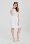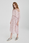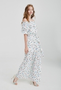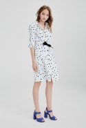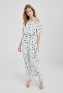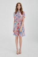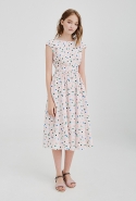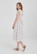 Главную роль, как всегда, играют принты. Их на этот раз два: веселые разноцветные горошки, похожие на рассыпанные по полу конфетти, и «цветочные луга» — растительный принт, выполненный в таких же жизнерадостных красках. Они украшают в основном платья самых разных фасонов, от воздушных мини с бантами на талии до платьев чуть подлиннее, с запахом или в пол.