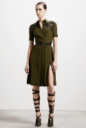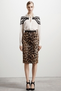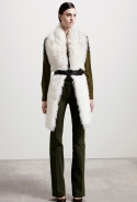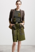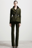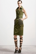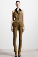С британской стороны здесь присутствуют наряды для верховой езды: узкие жокейские брюки, приталенные жакеты, сидящие на девушках как влитые, и неожиданная вечерняя часть — платья с животными принтами и платья-перчатки со шнуровкой по бокам, как у Dior, юбки-карандаши с рубашками. Даже стеганые теплые куртки в руках Альтузарры становятся почти парадными, благодаря пышным меховым воротникам, напоминающим роскошные манто. Тем неожиданнее на их фоне смотрится "военная" часть с летными комбинезонами и накладными карманами, издалека укладывающимися в камуфляжный рисунок.