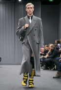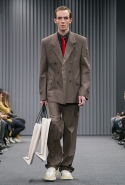 «Нормкорпорейт» — именно так называется новый стиль, изобретенный для Balenciaga Демной Гвасалией. Это уже не «нормкоровский» мальчик в ироничных спортивных костюмах и трениках, это злой яппи с Уолл-стрит с припудренным носом и важным мнением по любому поводу. Патрик Бэйтман уходит в моду? Почему бы и нет.