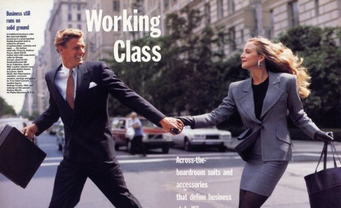 Референс: «Американский сихопат» Брета Истона Эллиса, «Основные цвета» и «Деловая девушка» Майка Николса, предвыборные кампании, офисные клерки, мода и кино 80-х, Уолл-стрит и биржевые нувориши