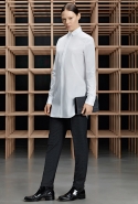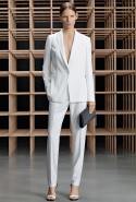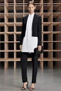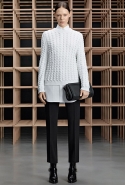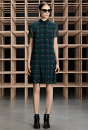 Межсезонье Джейсона Ву отличается маскулинной элегантностью, напоминающей об офисных буднях. Удлиненная белая рубашка свободного кроя и классические брюки уже ждут всех, кому не терпится одеться сдержанно, но удобно. Дизайнер сталкивает лбами цифровую современность и формы 60-х годов. По классическому брючному костюму, юбке, кофте расходится принт в широкую клетку, напоминающую о компьютерном экране.