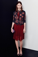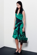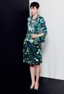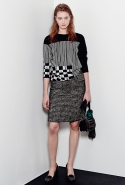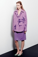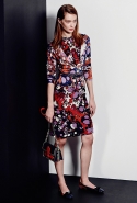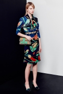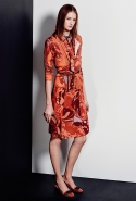 Похожее впечатление производят вещи и из новой предосенней коллекции. На пальто обнаруживаются потертости, похожие на такие же следы от "Белизны", а абстрактный рисунок на платьях напоминает те же потекшие, пошедшие пятнами принты. Но в этот раз объяснение у всего этого несколько иное: так Майер транслирует "глубоководную" тематику.