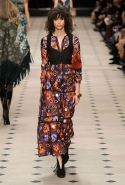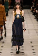 Претендуют на эту же роль главного объекта страсти следующей осени и брюки, собранные из округлых блоков замши разных цветов, словно лоскутные одеяла. Бейли нисколько не старается спрятать или сгладить грубые швы, а, наоборот, скрепляет разрозненные кусочки стежками все более размашистыми — нитки ему заменяют узкие кожаные полосы. Или, может быть, все станут грезить о мини-платьях? Украшенных затейливыми цветочными узорами или простых, как деревенские платья-рубахи, рисунком похожие на скатерти или вышитые полотенца. Сам же Бейли и вся команда Burberry наверняка особые надежды возлагают на Bucket Bag — новую сумку в семействе британского модного дома.