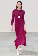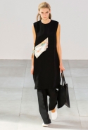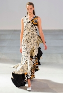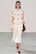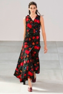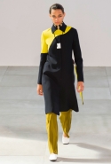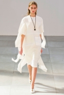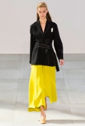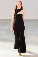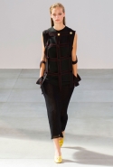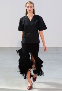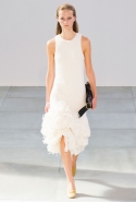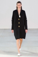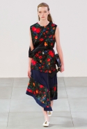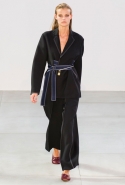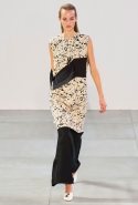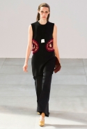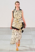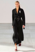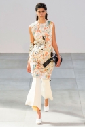 Фиби Файло славится своим талантом совмещать совершенно разные направления на подиуме так, чтобы это не просто смотрелось целостно, но и вызывало острое желание тут же отправиться в магазин. И хотя приобрести все и сразу не получится, потому что Céline, в отличие от многих брендов в новом сезоне, не распродают вещи прямо с подиума, wish-листы гостей показа пополняются с каждым новым выходом. Дизайнер снова сочетает, казалось бы, несочетаемое. Строгая геометрия пальто и топов с вырезами на плечах удивительно гармонично уживается с воздушностью брюк-кюлотов, которые, вопреки традициям, выполнены не из жесткого и держащего форму материала, а из легкой ткани. Черные юбки-миди от колена неожиданно рассыпаются пышными волнами бахромы. Рядом с костюмами с подчеркнутыми контрастными швами неожиданно проходит череда расслабленных вязаных платьев, а за ними — добрый десяток вариаций на тему цветочных принтов. Это и роскошные ярко-красные цветы, напоминающие нам рисунок на павлопосадских платках, и мелкий-мелкий пастельный узор, и орнаментальные контурные изображения.