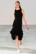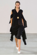 Неизменной остается только лаконичность аксессуаров. Округлые, овальной формы клатчи и сумки снабжены широкими ручками-ремешками, вся обувь — на не слишком высоком и идеально квадратном каблуке. Эта простота и минималистичность форм прекрасно уравновешивают богатство остальной коллекции.