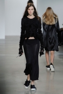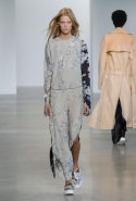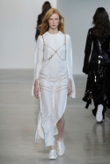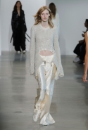 Креативный директор Céline, рассуждая в своей осенне-зимней коллекции о понятии сексуальности, подошла к вопросу более радикально. У Косты же все вещи хотя и явно отклоняются от нашего представления об их привычном виде, по-прежнему остаются в рамках нормы — пусть порой и у самого ее края. Он здесь не углубляется в исследования, а всего лишь объединяет в одну коллекцию две большие тенденции 90-х годов: минимализм, особенно близкий Calvin Klein в силу очевидных обстоятельств, и гранж, переведенный в высший эшелон моды благодаря смелости Марка Джейкобса.