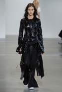 В новом сезоне бельевая тема стала одним из главных трендов нью-йоркской недели моды: о комбинациях, банных халатах и просторных пижамах неожиданно вспомнили очень многие марки. Подход у каждой к этому был свой: у Public School выглядывающие из-под плаща пижамные брюки подчеркивали расслабленность и крутую небрежность героини коллекции, у Alexander Wang платья, построенные на основе комбинаций, ожидаемо отвечали за сексуальность, а Такун Паничгул просто показал то, в чем мы спим и готовим себе по утрам завтраки, не пытаясь приукрасить картину. Но самый интересный взгляд представил в последний день модной недели Франциско Коста, креативный директор Calvin Klein. Он соединил чувственность невесомых сорочек с гранжем, а на примерах принтованных шелковых пижам потренировался в искусстве деконструкции. Это, конечно, тоже далеко не первый раз, когда мы видим подобное, — в прошлом сезоне за исследование чувственности, такое же красивое и убедительное, взялась Фиби Файло, — но выглядит по-прежнему свежо.