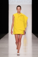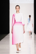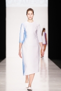 Рабочие халаты, обшитые крупными, "вассермановскими" карманами, и глухие платья-рубашки, которые вполне могли бы принадлежать ученым из фильмов 80-х годов, совсем не похожи на униформу работников оборонной промышленности и даже вирусологов. Поэтому и раскрашены они в самые яркие цвета, которые в коридорах любого другого НИИ казались бы совершенно чужеродными: это и небесно-голубой, и беззаботно-розовый, и желтый, и удивительно жизнерадостная камуфляжная раскраска. Под вывеской Cap America объединилась воображаемая команда ученых-художников. За своими рабочими столами (а может быть, и мольбертами) они создают новые ткани, имитирующие текстуру бумаги, и синтезируют цвета. Здесь проводятся эксперименты не с животными, а с палитрами — и на платьях появляются градиентные разводы, создающие на плоскости иллюзию объема.