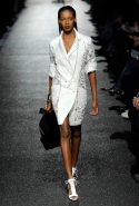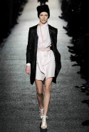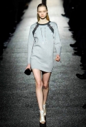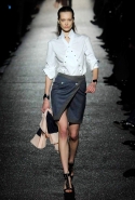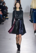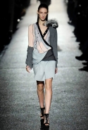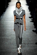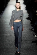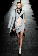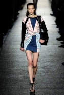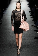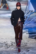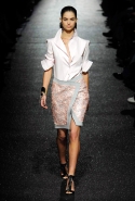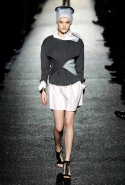 На шоу Alexis Mabille спортивные силуэты вновь соединились с девичьей классикой. Против трикотажных леггинсов с одинокой спортивной полоской дизайнеры выставляют нежно-розовые кружевные брючки; против свитшотов, грубо сметанных металлическими заклепками и шнуровкой, — свитера с узором из перекрещенных и связанных лент; против черных косух и бесформенных курток — шарфики с пушистым мехом и белые рубашки.