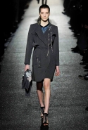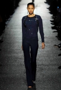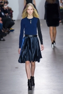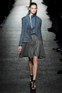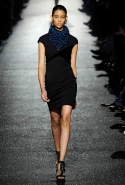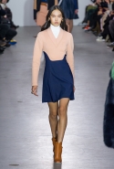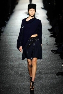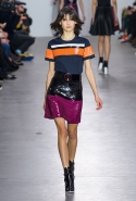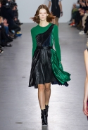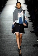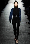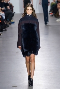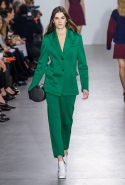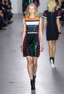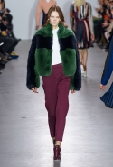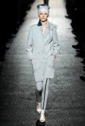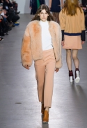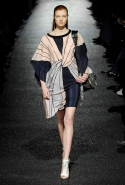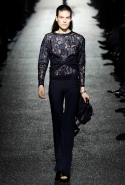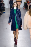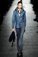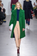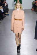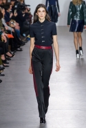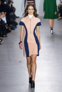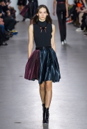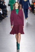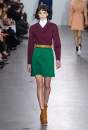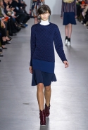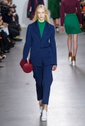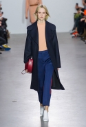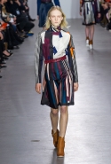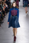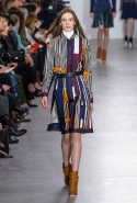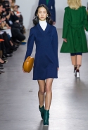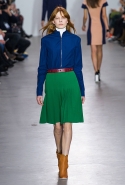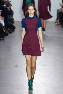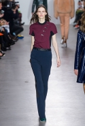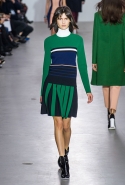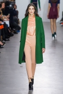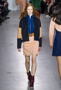 Главной темой осенне-зимней коллекции Cedric Charlier стала геометрия. Разумеется, не черно-белые чертежи и доказательства теорем со страниц школьных учебников, а россыпи ярких полос, нагромождения углов и прямых или ломаных линий. Все это, как всегда, находится в сильной связке с цветом: дизайнеры смешивают традиционно осенние оттенки синего, бордового и темно-зеленого с апельсиново-оранжевым, периодически добавляя отдельным вещам еще и металлический или лаковый отблеск. Яркость красок искупается простотой силуэтов — их дизайнеры в оcновном заимствуют из 60-х годов, представляя и вошедшие за несколько сезонов в привычку короткие юбки-трапеции, и брючные костюмы, и околоспортивные вещи.