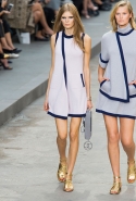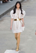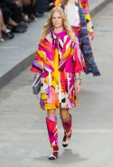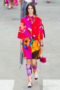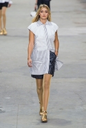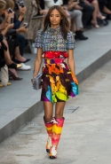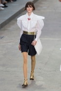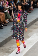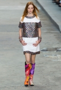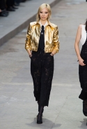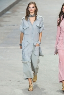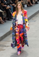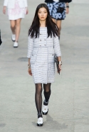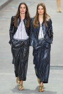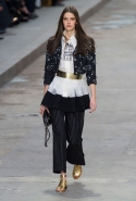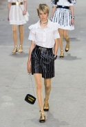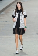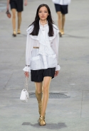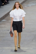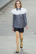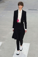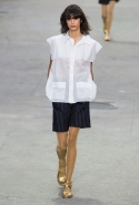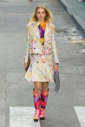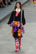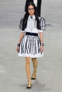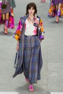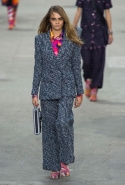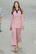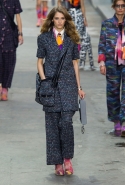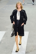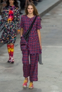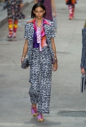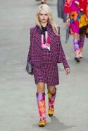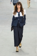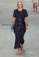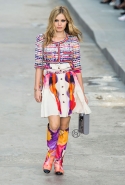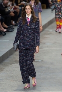 Сама коллекция получилась не менее яркой, чем шоу, устроенное Карлом Лагерфельдом. Любой демонстрации, в конце концов, положено быть яркой, тем более если проходит она весной — кому как не нам, в чьей памяти даже в октябре живы первомайские "Мир, труд, май!", об этом знать. Больше всего модели на показе французской марки были похожи на бунтующих студенток модных колледжей: в томбойских костюмах из фактурного твида ("Твид лучше твитов", да-да, мы помним) с размашисто подвернутыми краями широких штанин, в нарядах, разрисованных акварельными разводами и забрызганных пятнами краски, словно стекшей с нарисованных вручную плакатов. Вторая половина коллекции оказалась менее красочной и отсылала уже скорее к внешнему виду, конструкции и цветам самих бульваров. Отсюда и несколько квадратные, прямые линии силуэтов, и обилие геометрических вставок в виде контрастных полос и необычных графичных фигур, и, конечно, сама цветовая гамма от светло-серого до темно-синего. А роль новых "кутюрных кроссовок" досталась на этот раз красочным сапожкам, покрытым пестрыми разводами.
